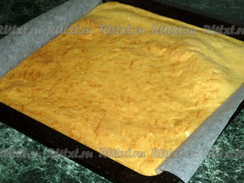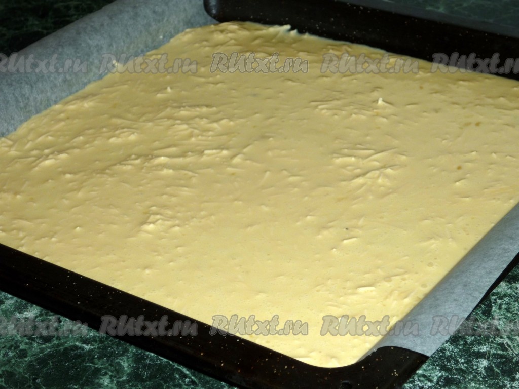 Полученную массу вылить на  противень, застеленный бумагой для выпечки.