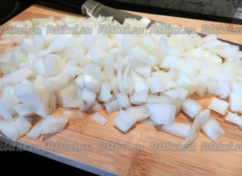 Оставшуюся луковицу очистить, нарезать кубиками.