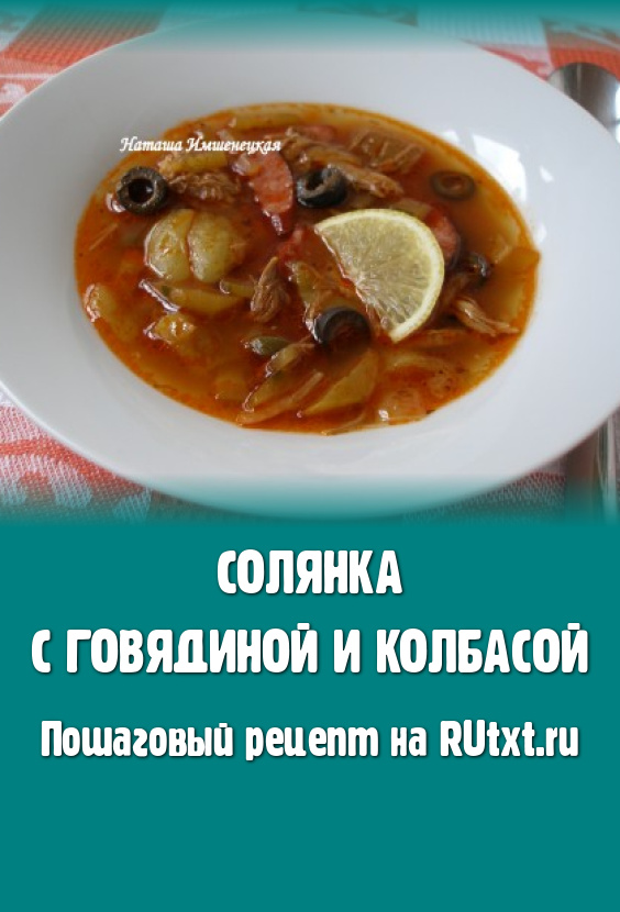 Дать солянке с говядиной и колбасой настояться 20 минут и подавать, положив в каждую тарелку по дольке лимона. Блюдо, приготовленное по этому рецепту, и насытит, и порадует приятным вкусом.