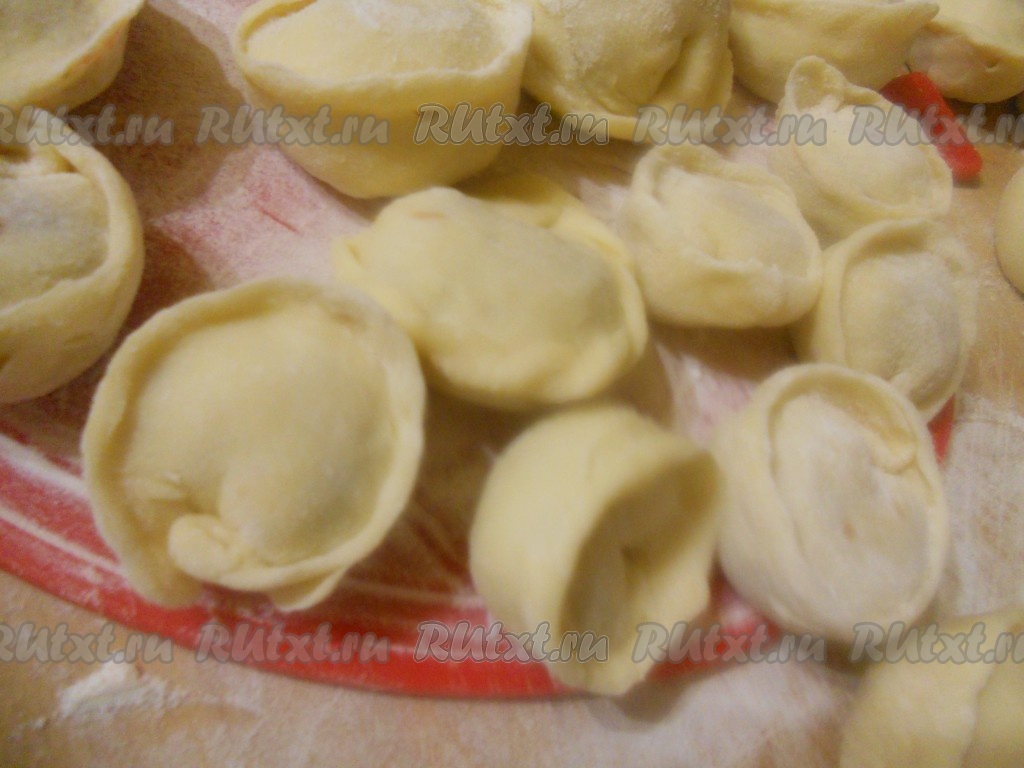 Тесто разделить на части, раскатать каждую и вырезать кружочки рюмочкой, положить фарш и налепить пельменей.