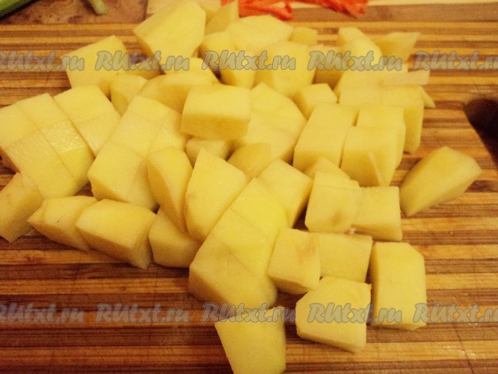 Картошку нарезать кубиком.