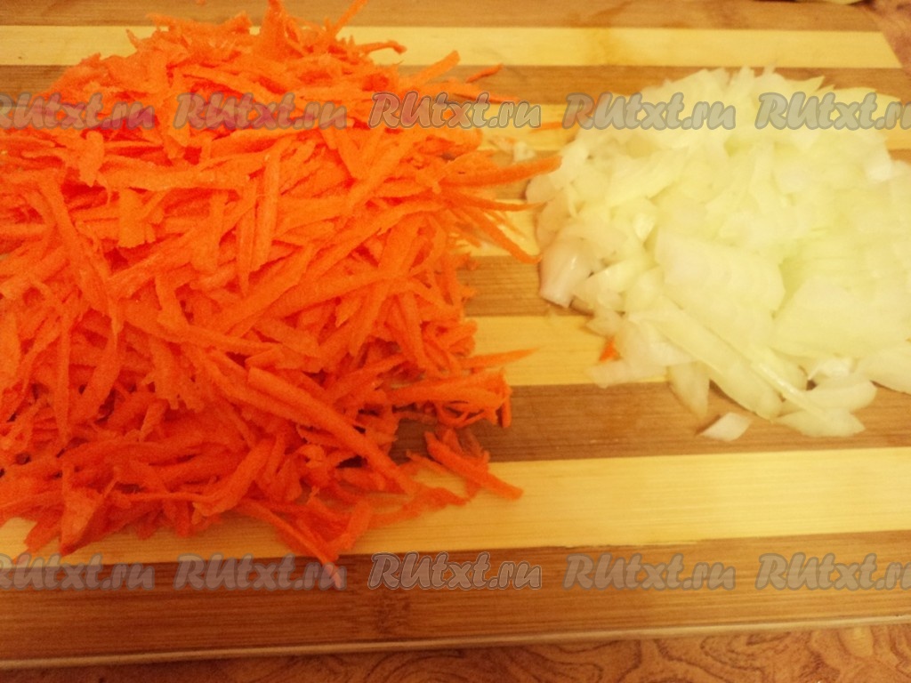 Лук мелко нарезать. Морковь натереть на терке.