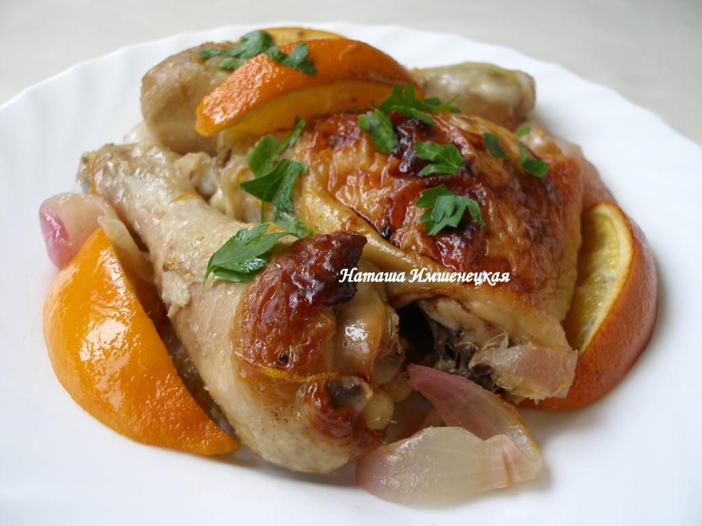 Аппетитная курица, запечённая с апельсинами и мёдом в духовке, порадует отличным вкусом и ароматом!