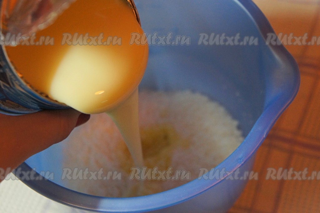 Добавить сгущенное молоко комнатной температуры, перемешать.