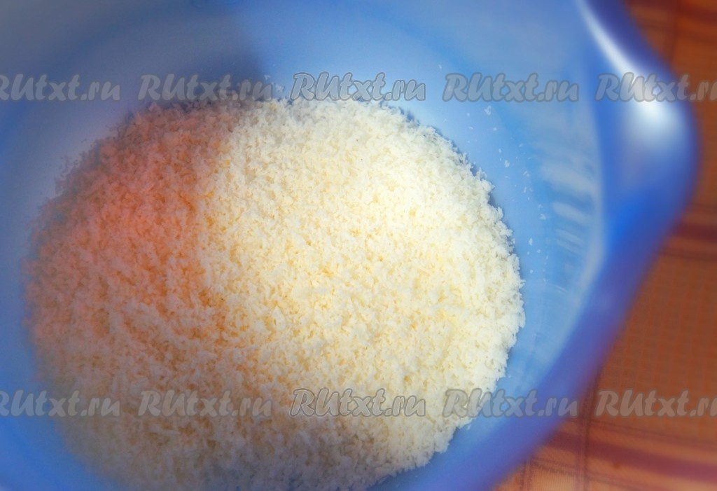 Кокосовую стружку высыпать в глубокую миску. Немного оставьте для обсыпки.