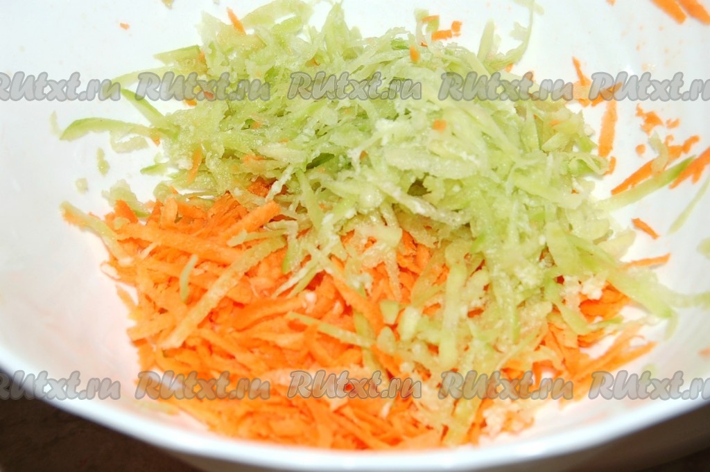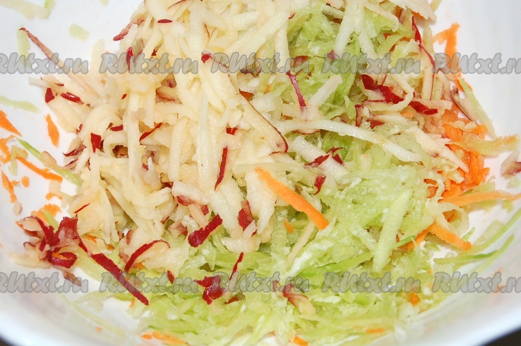 Теперь добавить натертое яблоко, вместе с кожурой.