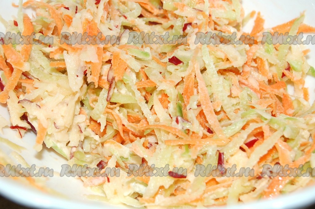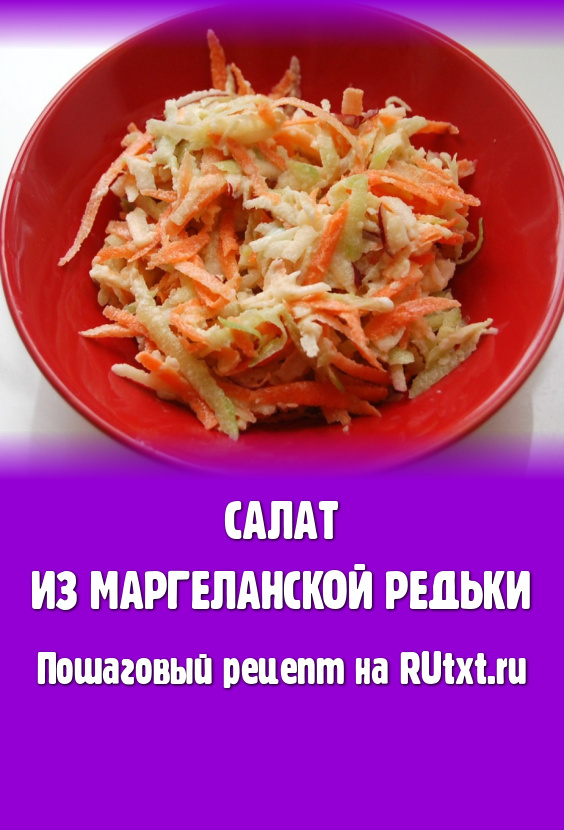 Очень освежающий приятный салат, который полезен всем. Это блюдо можно готовить из любой редьки. Но я использую для приготовления салата маргеланскую, зеленую редьку, так как она более мягкая, по сравнению с черной. Блюдо можно заправлять растительным маслом, сметаной, майонезом, каждый может выбрать заправку на свой вкус. Все продукты доступны, этот салат можно есть в зимний период хоть каждый день, благодаря своему универсальному вкусу он никак не надоест, а пользы принесет немало.
