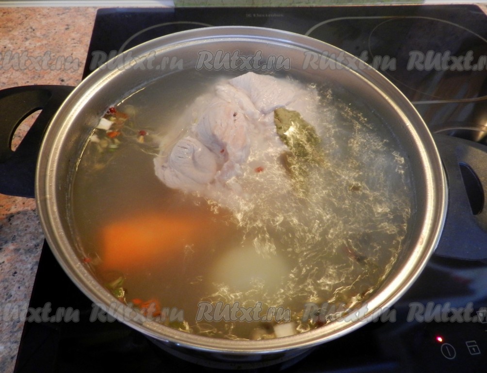 За 15-20 минут до готовности посолить бульон, добавить специи.