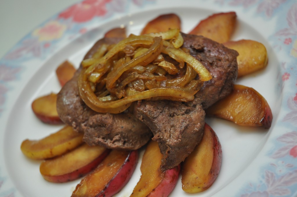 Подаем печень по-берлински, как самостоятельное блюдо. Яблоки отлично выполняют роль гарнира.