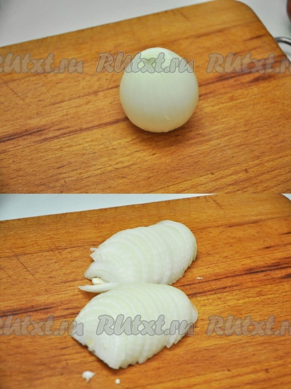 Нарезаем полукольцами лук.