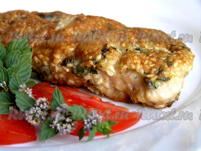 Эта отбивная из свинины вполне может быть на Вашем праздничном столе, благодаря своей оригинальной панировке с освежающей мятой и кунжутом. Быстро, вкусно, красиво и сытно! Попробуйте!