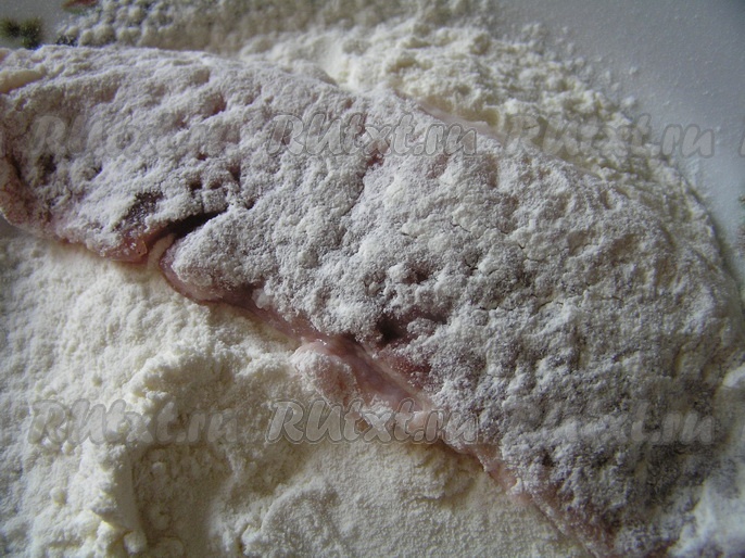 Каждый кусочек обвалять в муке,