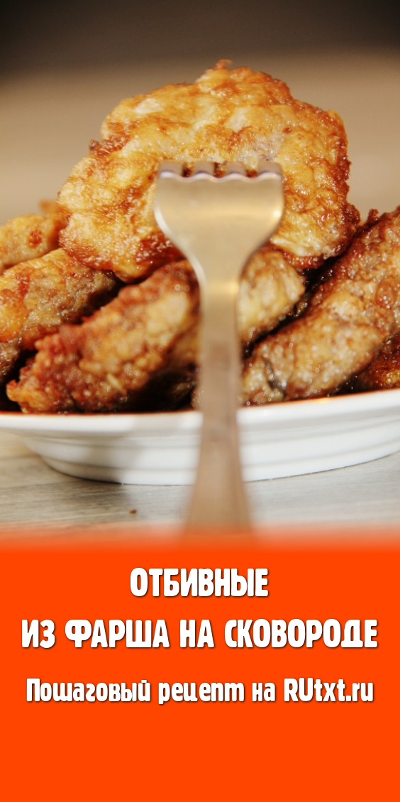 В сковороде разогреть растительное масло, выложить отбивные из фарша, покрытые яичным кляром. Жарить на среднем огне примерно 3-4 минуты (до подрумянивания снизу), затем перевернуть, накрыть сковороду крышкой и жарить отбивные ещё 3-4 минуты. Накрывать сковороду крышкой при обжаривании отбивных со второй стороны нужно для того, чтобы фарш немного пропарился.