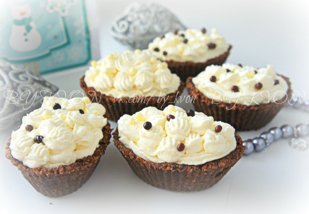 Печенье измельчить, добавить к печенью какао с растопленным сливочным маслом, перемешать. Основа для корзиночек готова. Разделить основу на 5-6 частей и сформировать корзиночки, плотно придавливая массу к стенкам формочек (я использовала силиконовые формы для маффинов). Отправить корзиночки в холодильник на 10-15 минут.