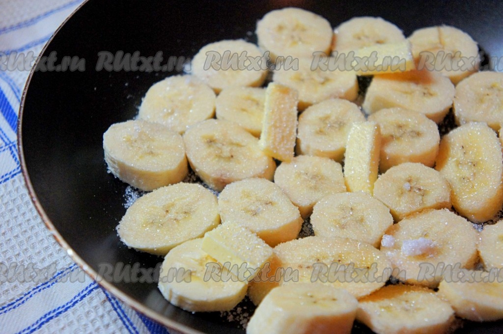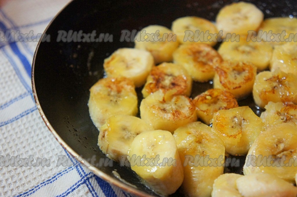 Карамелизовать бананы по 1-2 минуты с каждой из сторон, снять с огня и дать банановой начинке остыть.