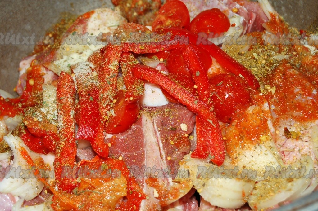 Затем добавить нарезанный сладкий перец, соль, перец, специи.