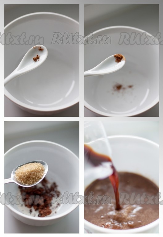 Замечу, в оригинале кофе должно быть сварено в турке или кофемашине. Я же поленилась варить и обошлась растворимым кофе.