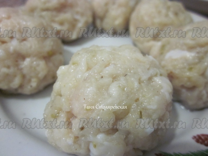 Из куриного фарша слепить фрикадельки.