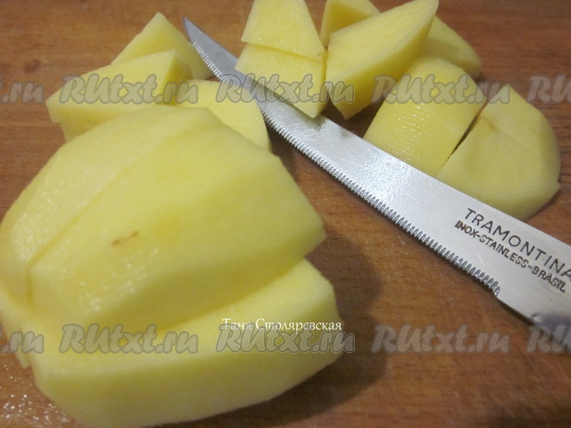 Картофель порезать кубиками.