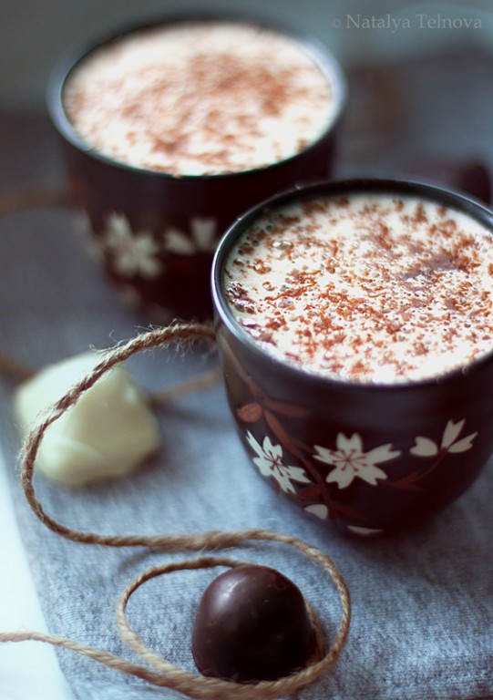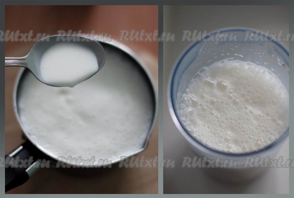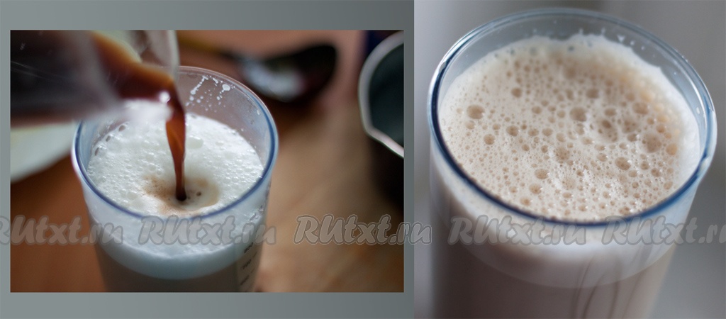 Молоко закипело - снимите его с плиты и добавьте сливки. Хорошо взбейте до пенки.