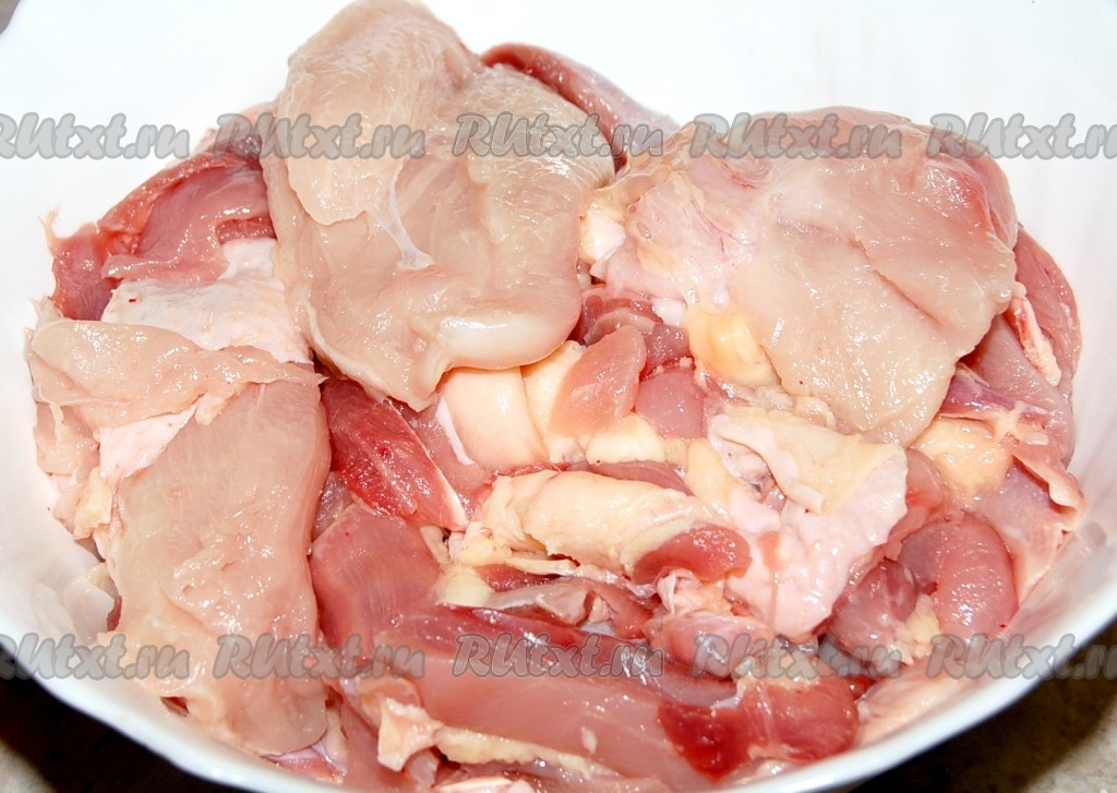 Разобрать целую курицу, отделяя мясо от костей.
