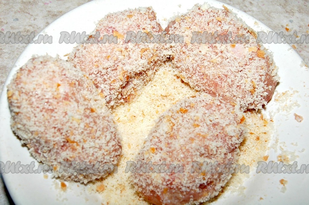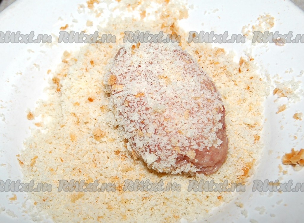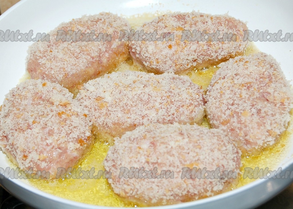 Из фарша сформировать одинаковые котлеты. Каждую котлетку обвалять в хлебных крошках.