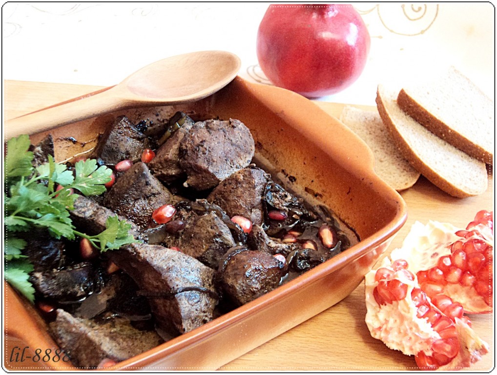 Мне очень нравится сочетание печени и граната. Хочу предложить Вам этот несложный и вкусный рецепт приготовления куриной печени, запеченной в духовке.