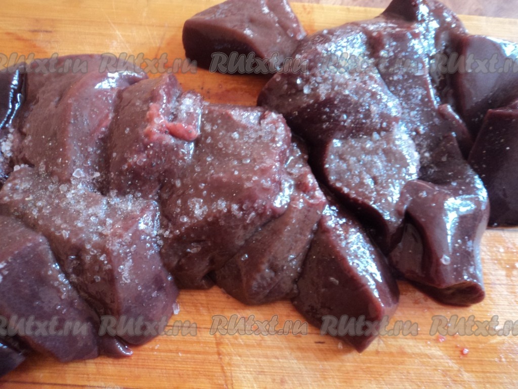 Обжарить печенку быстро в растительном масле с двух сторон до золотистой корочки. Затем переложить в форму для запекания.