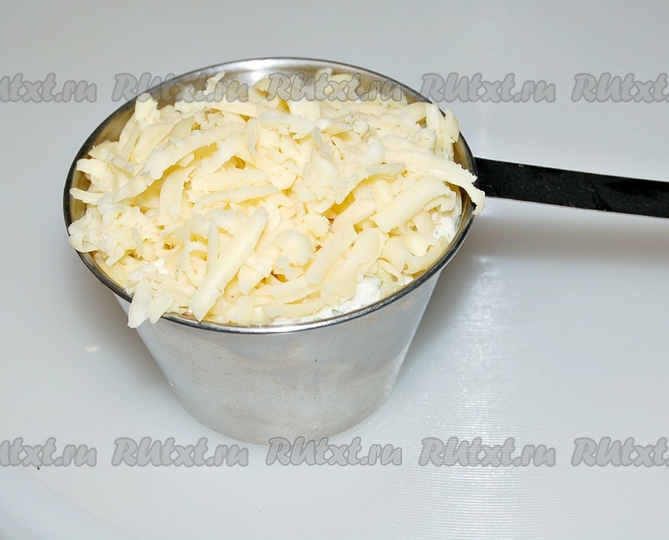 Выложить сыр до самого верха кокотницы.
