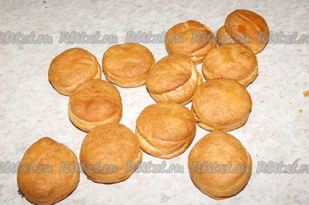 После того как булочки остынут, разрезать их пополам.