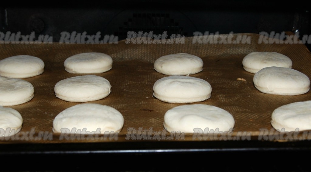 Вырезанные кружки выложить на противень, застеленный бумагой для выпечки.