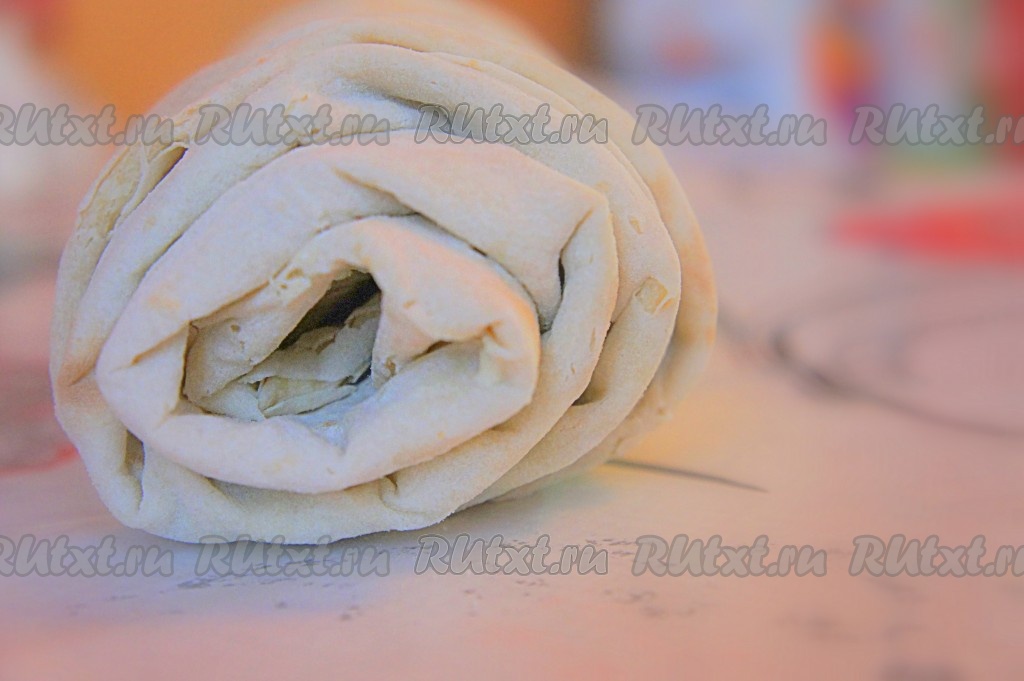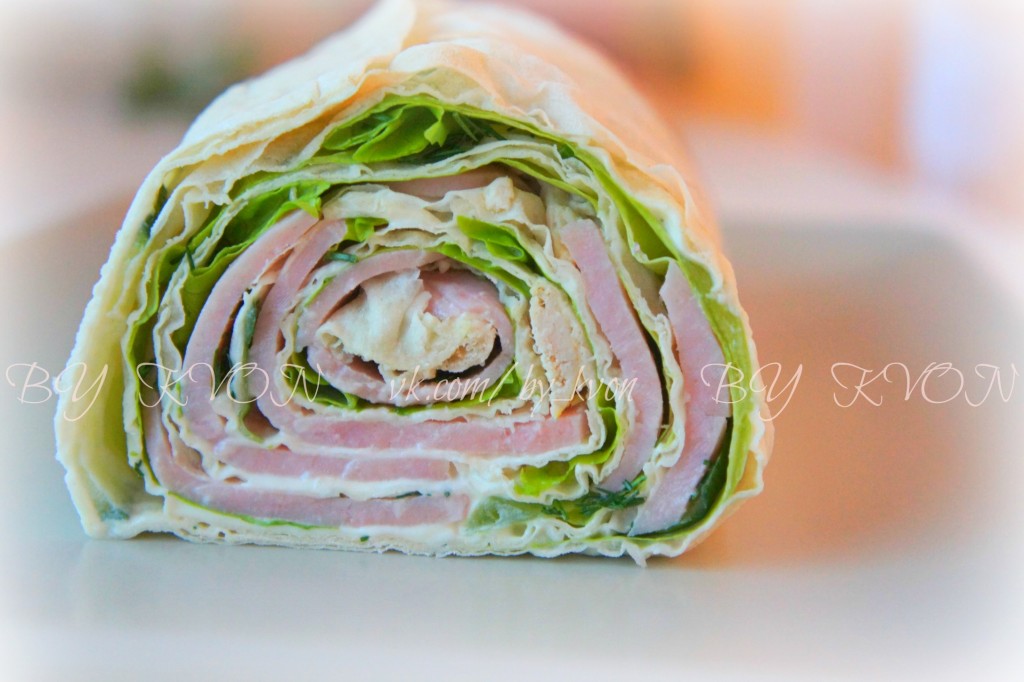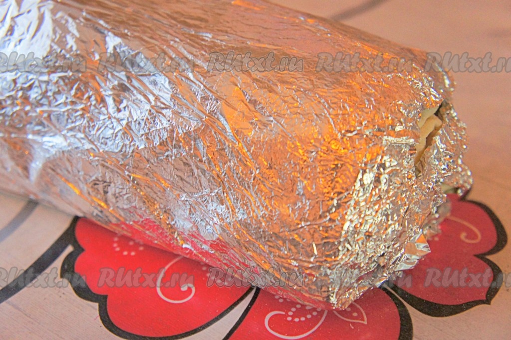 Свернуть лаваш (!) плотным рулетом.