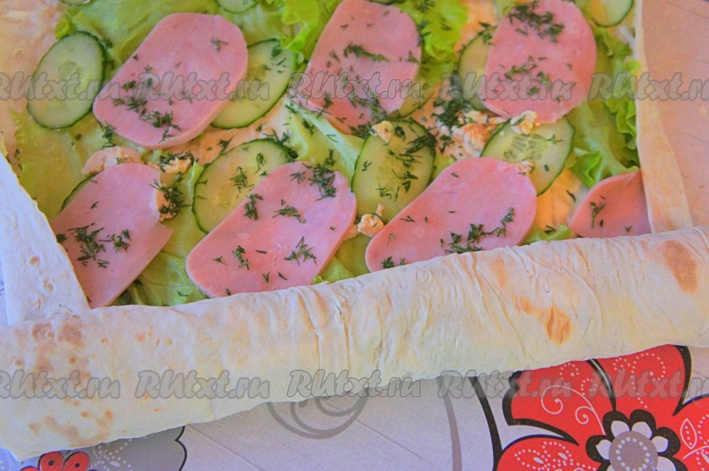 Края лаваша подогнуть.