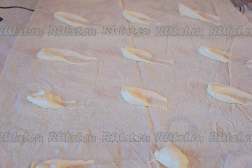 Лаваш по всему периметру смазать плавленным сливочным сыром, тщательно промазывайте и края лаваша.