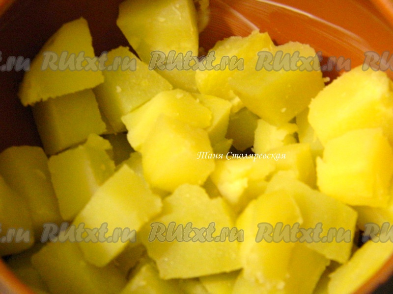 Горшочки обмазать маслом. На дно высыпать картофель.