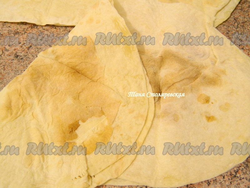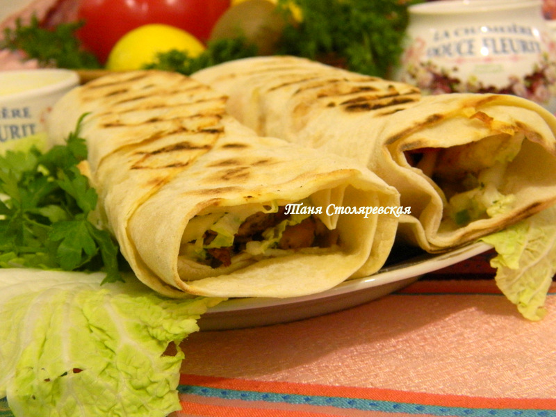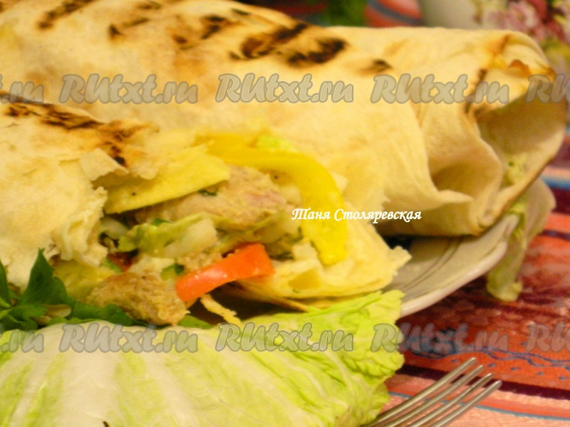 Для шаурмы я использую армянский лаваш, он тонкий и нужного размера. В домашнем лаваше готовить шаурму не советую, так как он толще и шаурма получится в нем жестче.