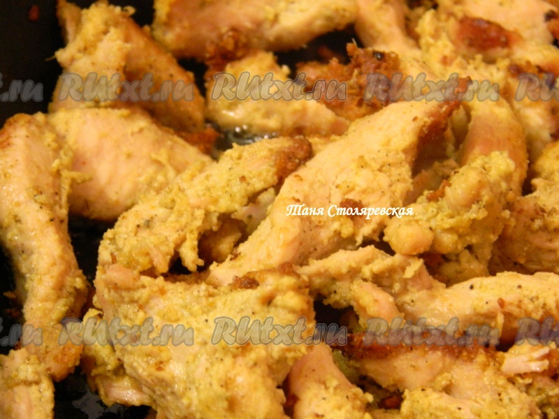 Затем филе обжариваем до золотистой корочки. Пробуем на соль и специи, если чего-то не хватает, добавляем.