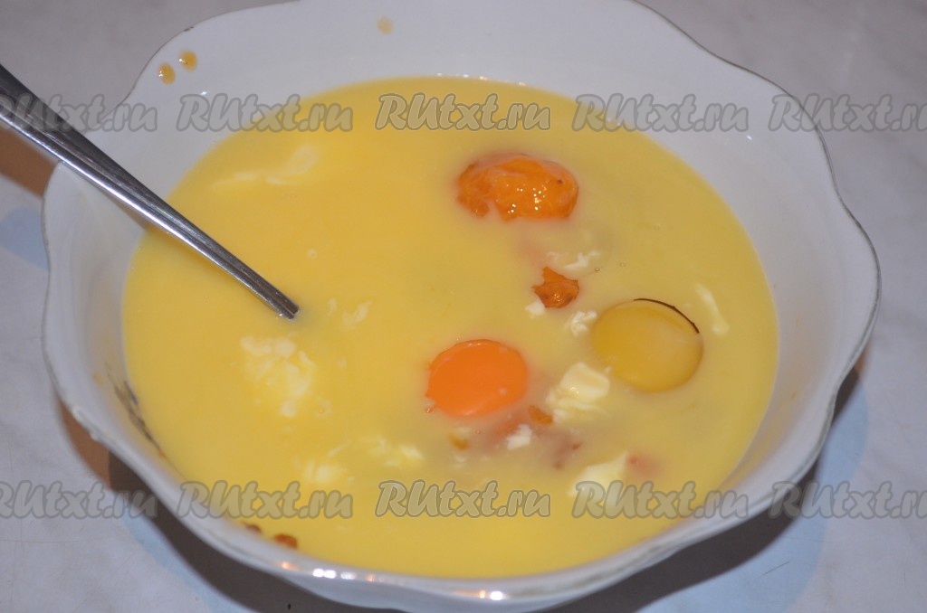 Добавить к хурме растопленное сливочное масло и яйца. Взбить венчиком.
