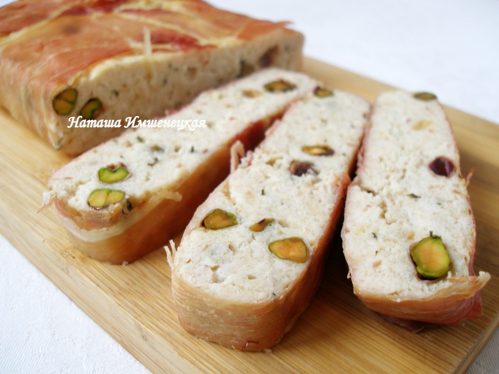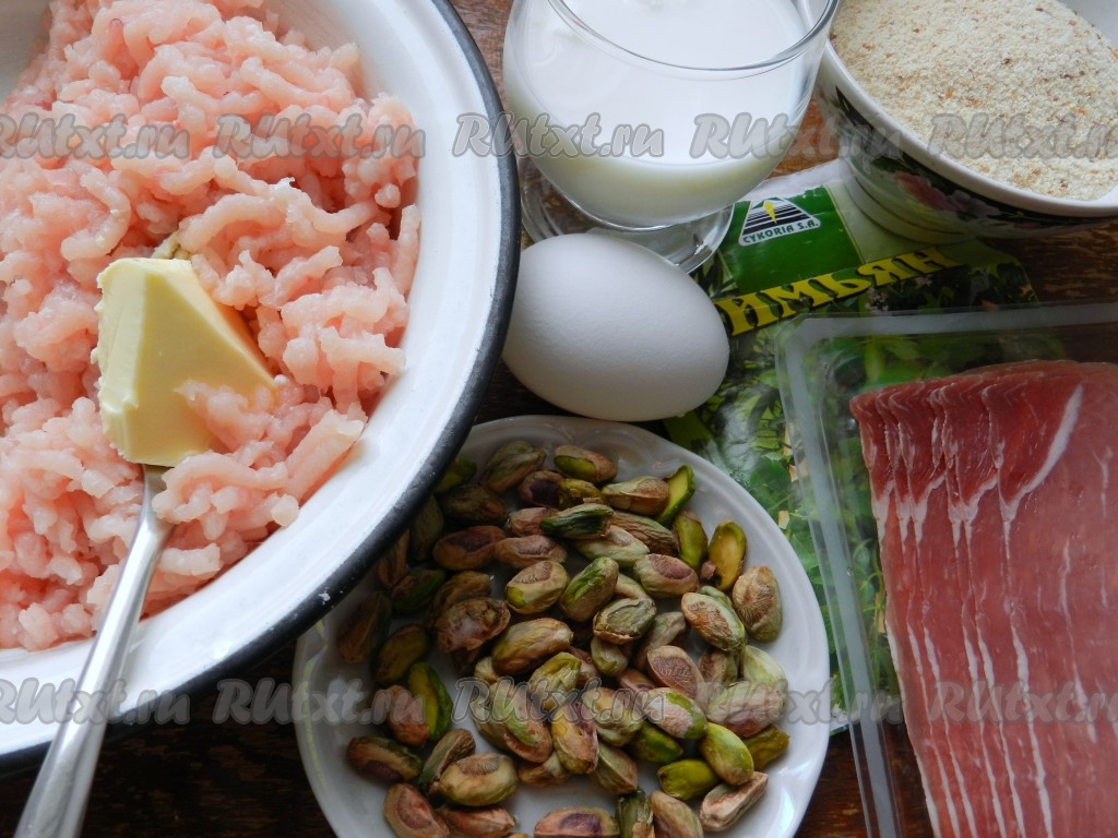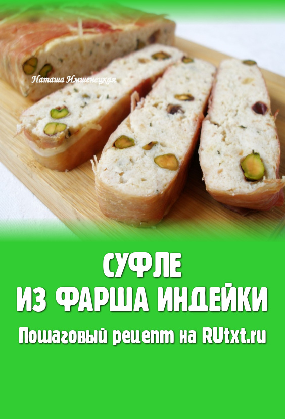 Суфле из фарша индейки, запечённое в духовке, - очень нежное, сочное и вкусное блюдо. Я добавила в фарш очищенные фисташки и завернула суфле перед запеканием в полоски бекона. У меня получилось сочное блюдо, которое можно подать к столу не только в будни, но и в праздники. Хотя конечно же можно приготовить суфле и без бекона с орехами, тогда получится более диетический вариант. Подавать суфле из индейки можно в тёплом или в холодном виде. На гарнир хорошо подойдут крупы, запечённые овощи или лёгкие овощные салаты.