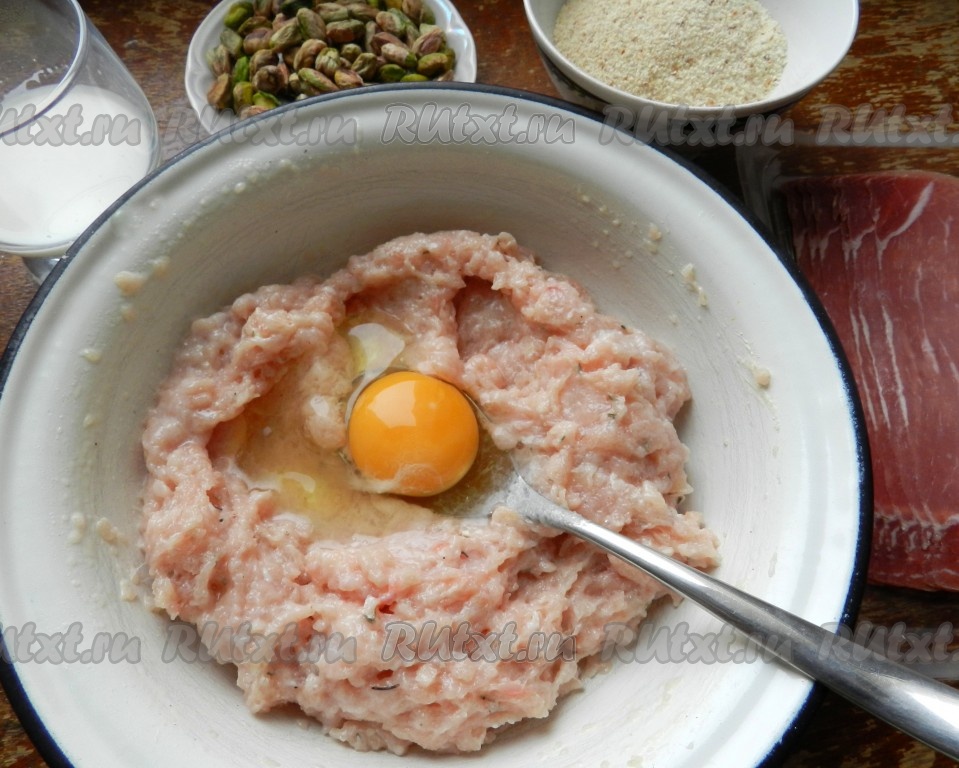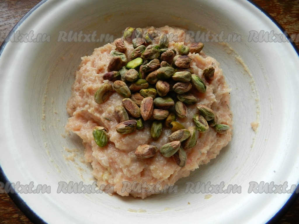 Я ещё дополнительно положила в фарш фисташки, но это необязательно. Ещё раз перемешать фарш.