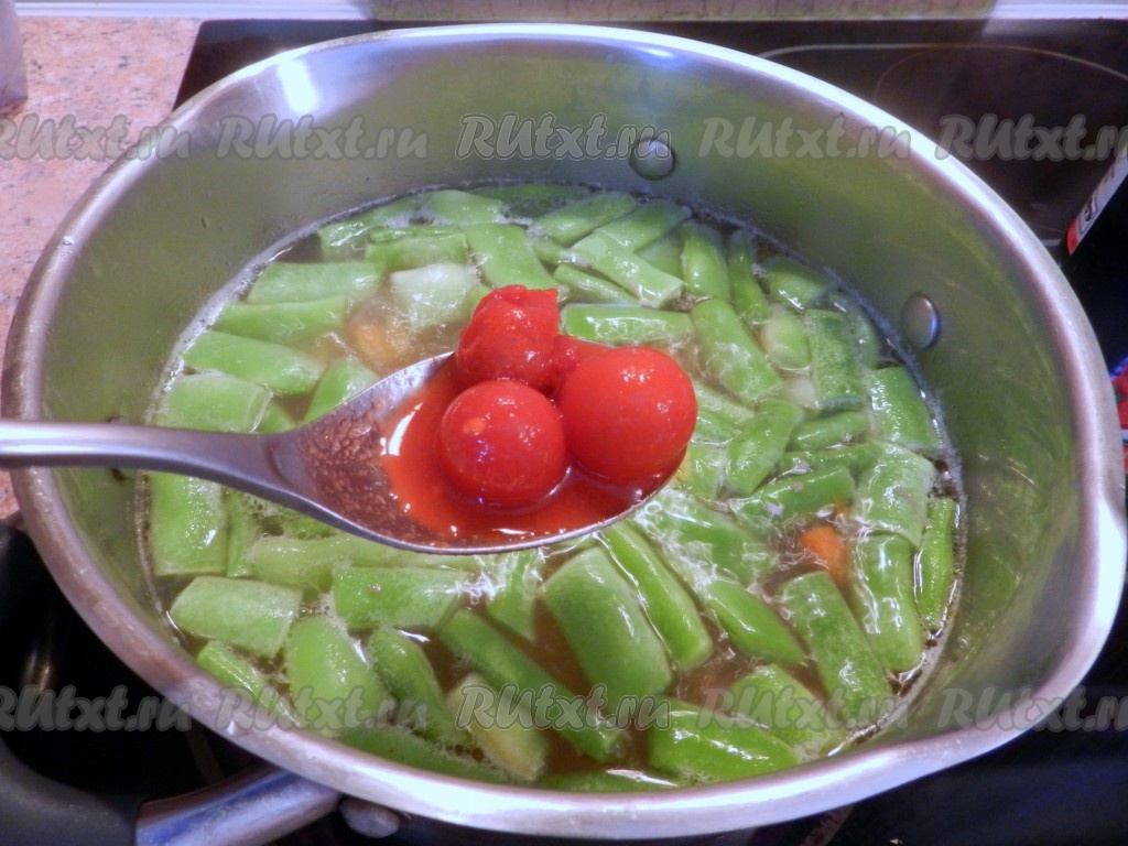 За 1-2 минуты до готовности добавить в суп, по желанию, помидоры в собственном соку.