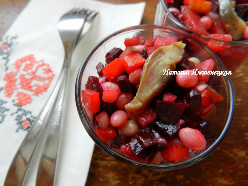 Привычный для всех салат винегрет становится особенно вкусным, если овощи для него запечь в духовке. Я рекомендую приготовить винегрет с сельдью и запеченными овощами с добавлением белой фасоли и с оригинальной заправкой.