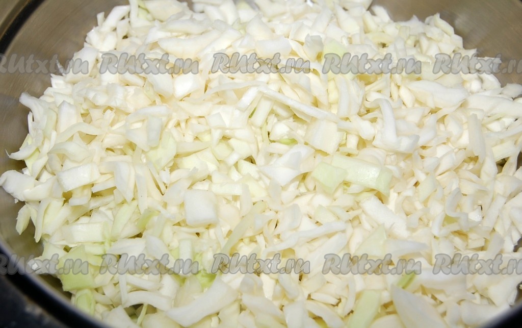 Капусту свежую нарезать мелкими кубиками.