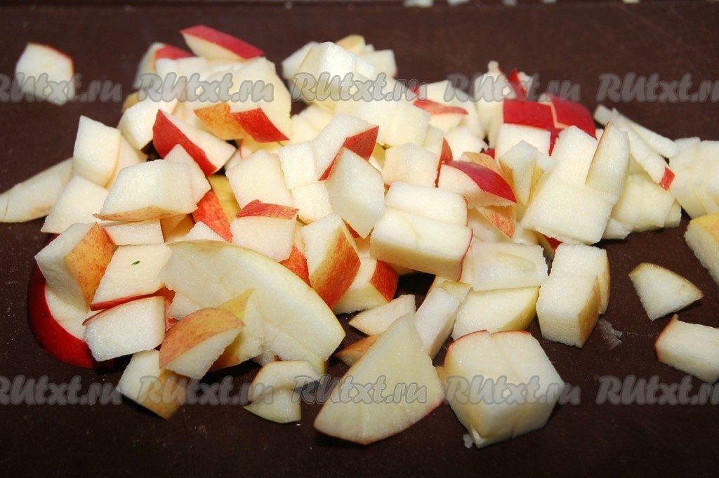 Яблоко вместе с кожурой нарезать на мелкие кубики.