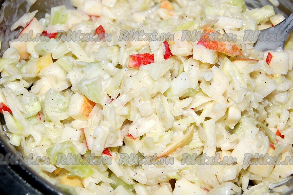 Добавить сельдерей с яблоком к капусте.