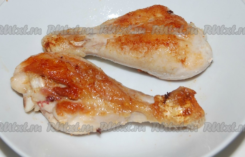 Когда куриные ножки буду обжарены, выключить огонь, посолить их и посыпать небольшим количеством специй. Пусть немного остынут.
