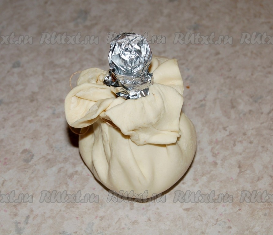 Сложить тесто с краев к центру и завязать кулинарной ниткой или обычным шпагатом.