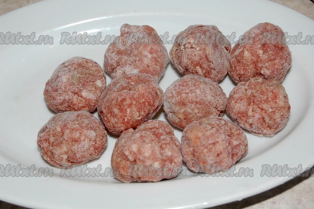 Затем свекольно-морковную массу добавить в кастрюлю к капусте с картофелем. Посолить, добавить специи, лавровый лист. Довести до кипения и в кипящий борщ выложить фрикадельки. Я использовала замороженные фрикадельки, размораживать их не надо. Для приготовления фрикаделек я промалываю на мясорубке говядину и свинину, добавляю соль и перец, затем формирую фрикадельки, раскладываю их на доске в морозилке (а если зима, то можно на балконе, на лоджии). Как замерзнут, складываю их в пакет и у меня всегда в морозилке есть запас вкусных, домашних фрикаделек. Очень удобно их использовать не только для первых блюд, но также и для вторых.