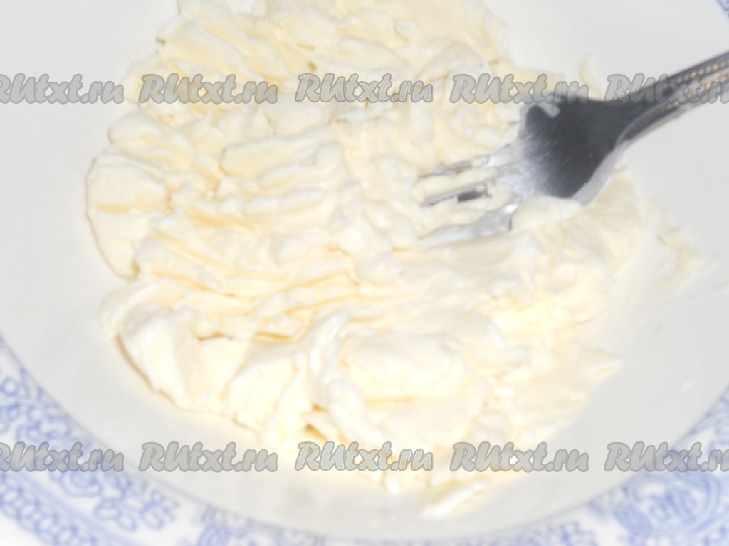 Плавленный сыр выложить в тарелку, подавить вилочкой.