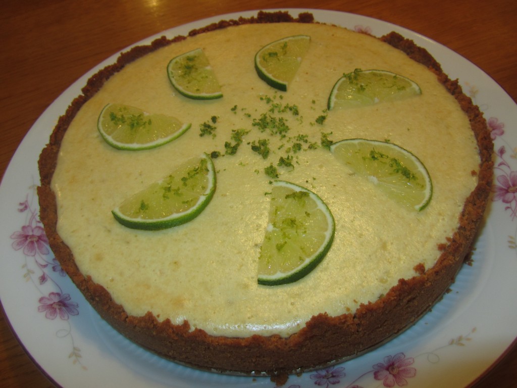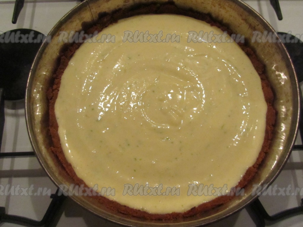 Вылейте крем в форму (разъемная форма, диаметр 21 см) с заготовкой и выпекайте лаймовый пирог 20 -25 минут при температуре 160 градусов.